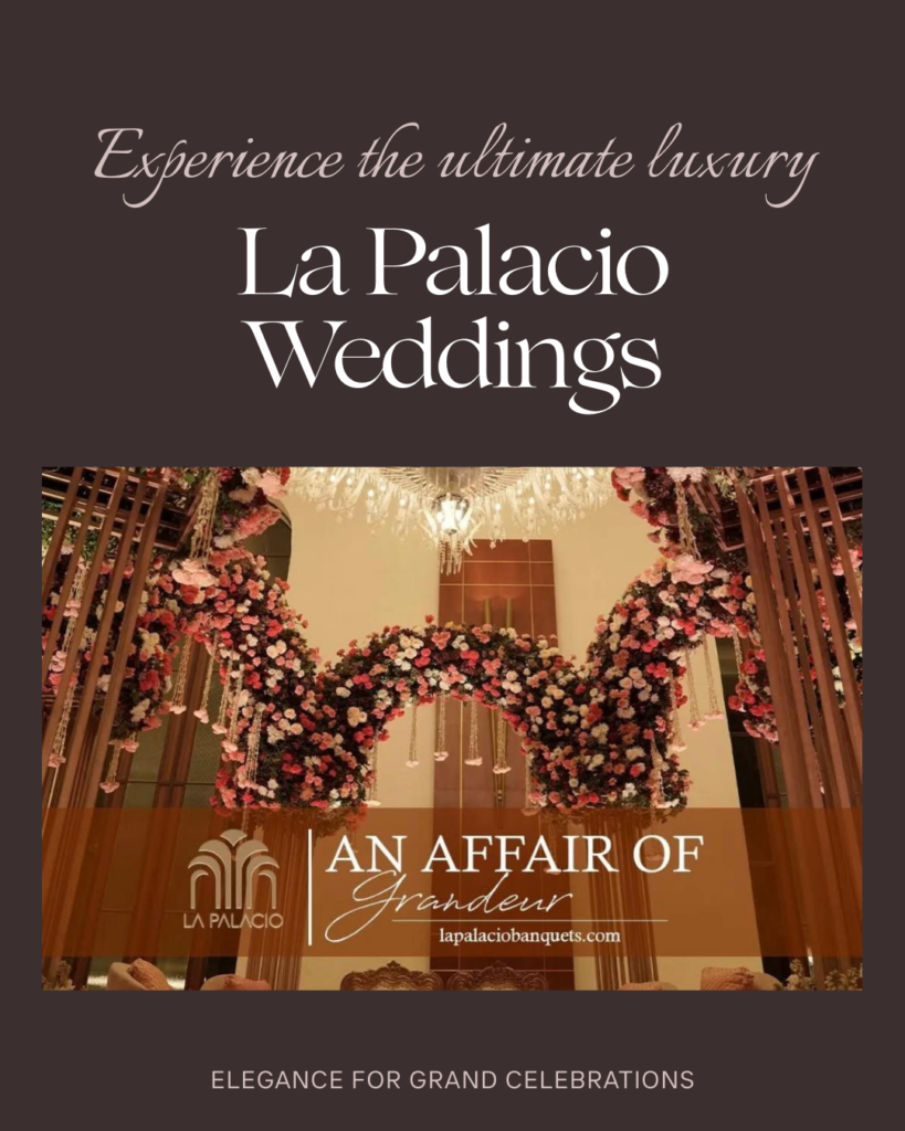 La Palacio prides itself on versatility. Their design philosophy allows for the execution of different themes and concepts, ensuring your “Bollywood Night” looks distinct from your traditional wedding morning.